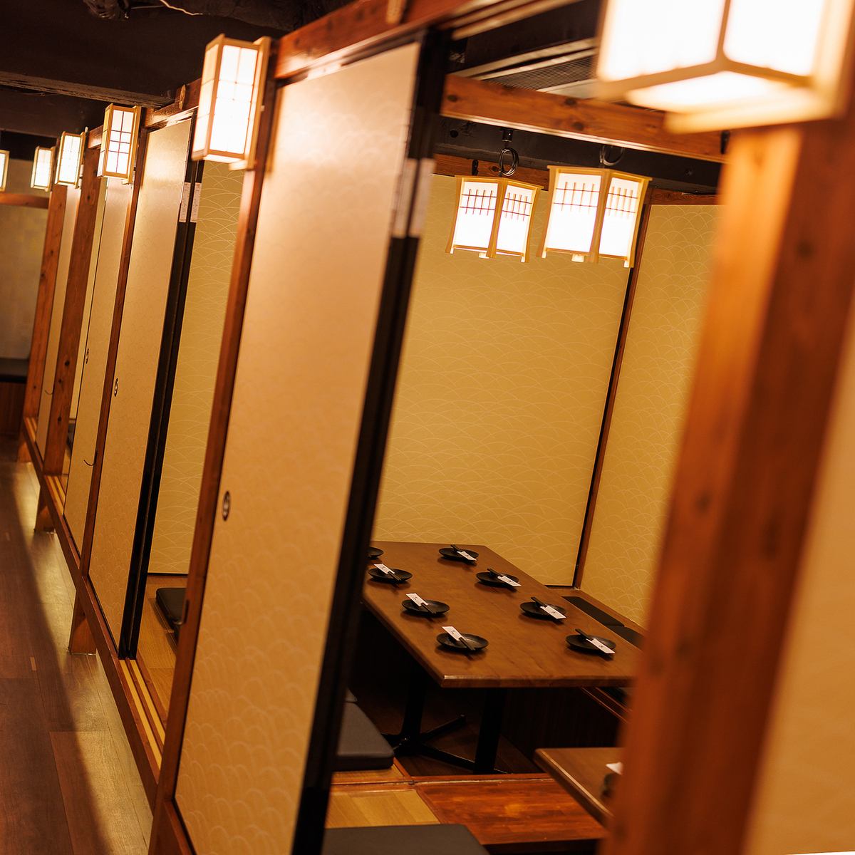 大中小個室完備でさまざまなシーンに対応可能!都会の喧騒を忘れさせてくれる情緒漂う和個室空間。日頃の疲れを癒してくれます。